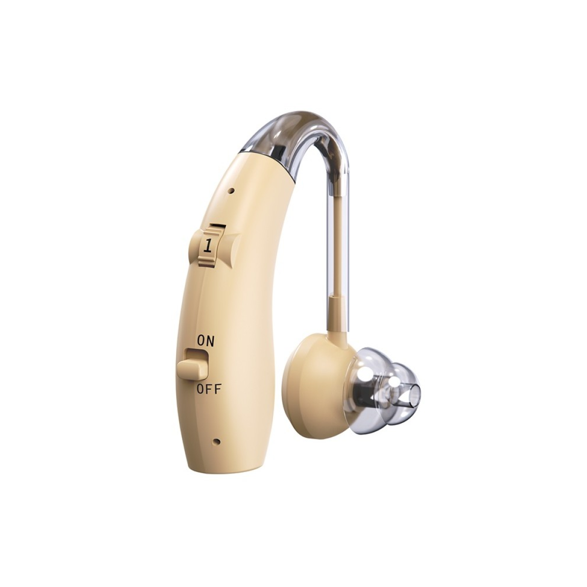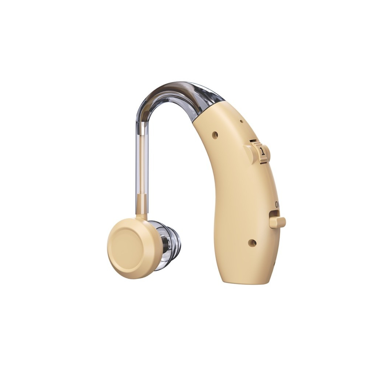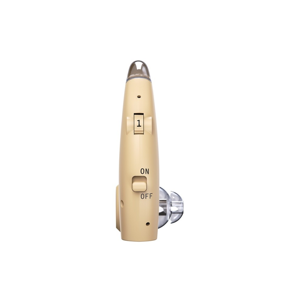 Цей слуховий апарат має невеликий розмір і носиться за вушною раковиною. Забезпечений світловим індикатором заряду.
