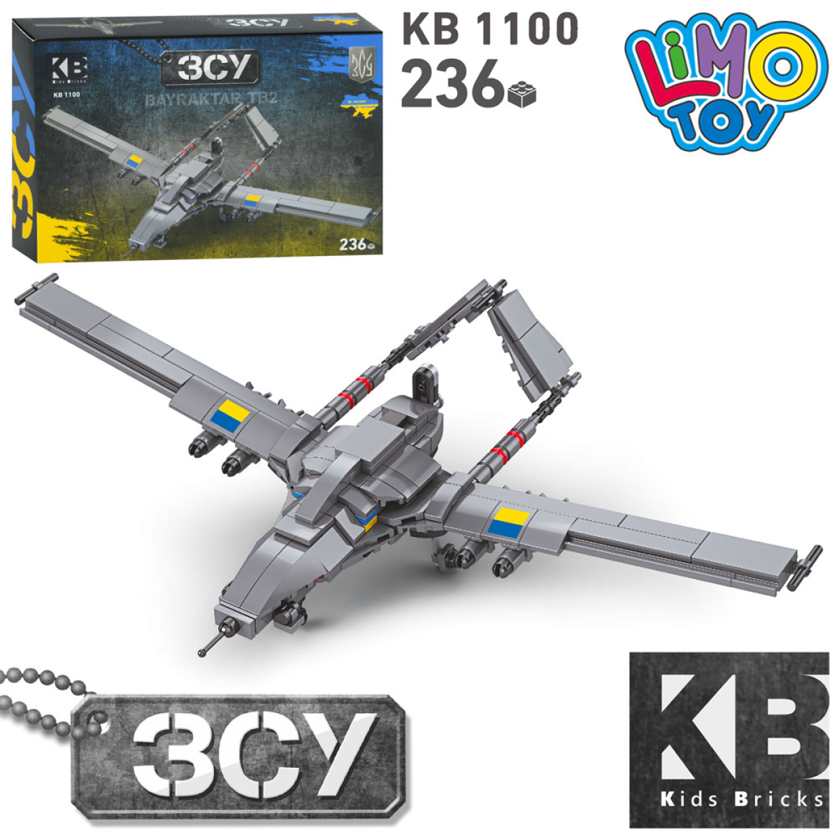 Дитячий конструктор Limo Toy Військова техніка ЗСУ “Байрактар“ Безпілотник ТБ - 2 236 деталей KB-1101